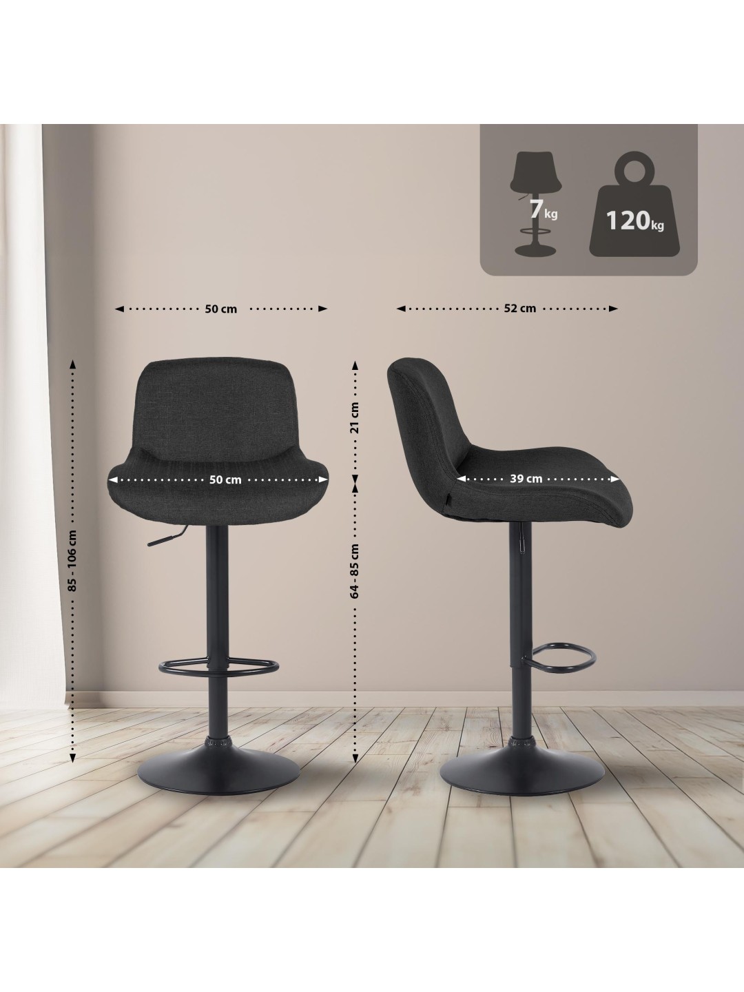 A matt fekete fém székkeret és a divatos huzat elegáns megjelenést kölcsönöz a széknek. Az ülést tartós anyaggal vagy stílusos bársony borítja. A fémváz állítható magasságú, a 360 fokos elforgatási funkció pedig nagy mozgásszabadságot biztosít.