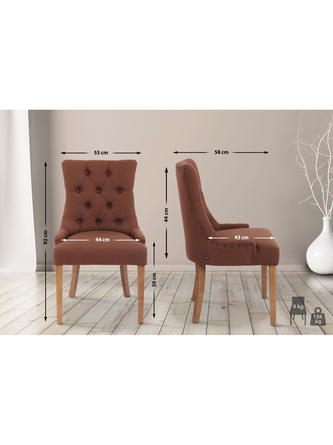Az Aberdeen étkezőszék stílusosan felpezsdíti hangulatát. A párnázott szövetborítású ülőfelülettel és gyönyörű dekoratív varrással és gombokkal ez a szék ízléses dizájnt hoz létre. Ez a fotel stabilan és stabilan áll a gumifából készült négylábú vázon. Kényelmes, masszív és egyben stílusos ülés mindennapi használatra, és tökéletes kiegészítője a modern szobáknak.