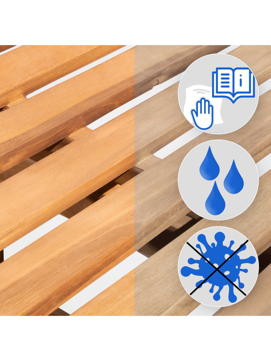 A nemesfa teak rendkívül jó minőségű és strapabíró anyag. Tekfa kerti bútorait ezért egész évben kint hagyhatja. A szín tartós megőrzése érdekében a tikfa megfelelő ápolóolajait javasoljuk, amelyeket szükség esetén a szakkereskedőktől szerezhet be. Ez a teak pad különböző hosszúságban kapható. Akár külön-külön, akár kombinálva – mindig van elég hely a pihentető pillanatokhoz a kertben!